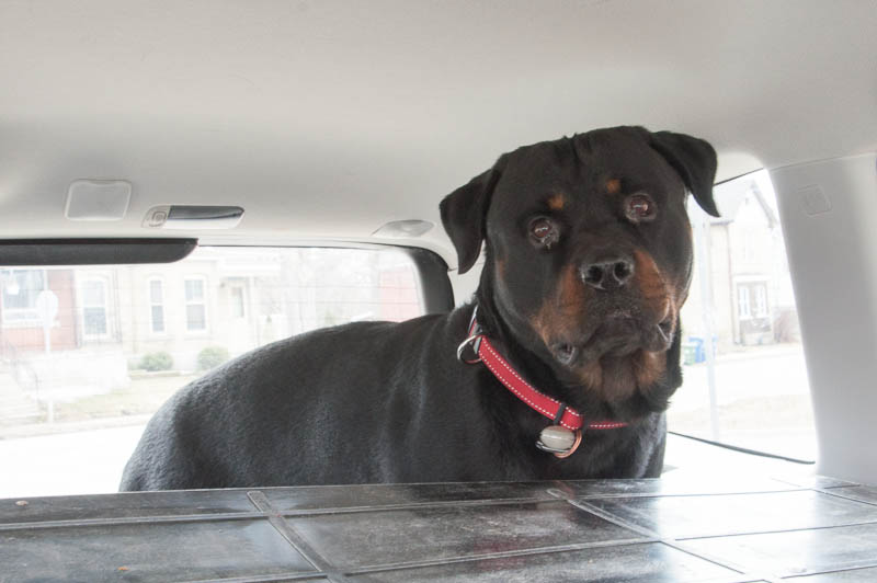 Following a filling breakfast of oatmeal with walnuts and blueberries, drizzled with dark maple syrup, that Yelena whipped up for us, we loaded up the car and Steve and I did the reverse trip to drop Jethro back at his home in Guelph.  He must have been tired because there was no whining and no standing up.