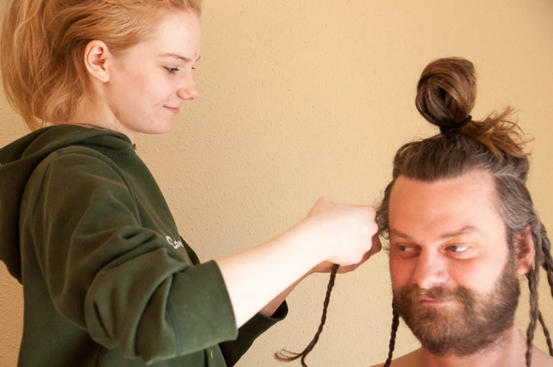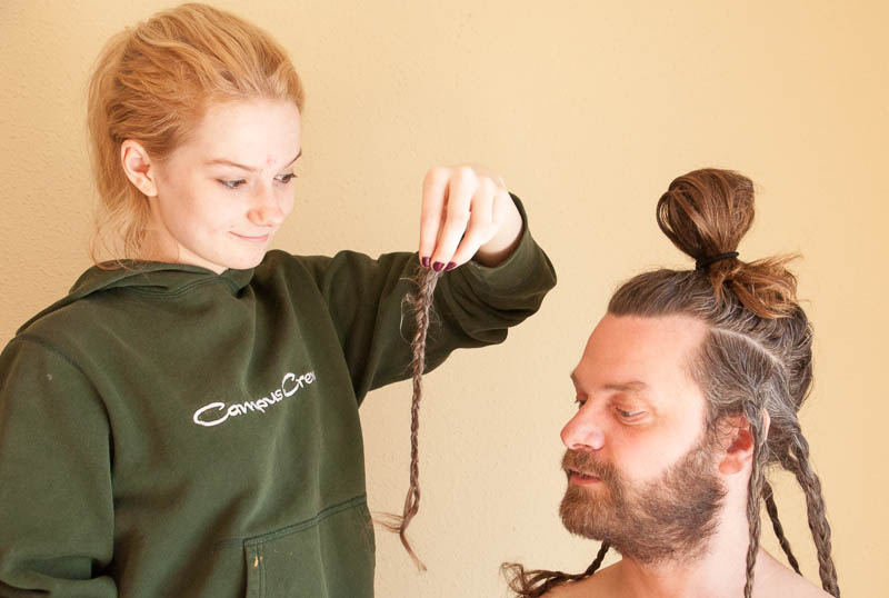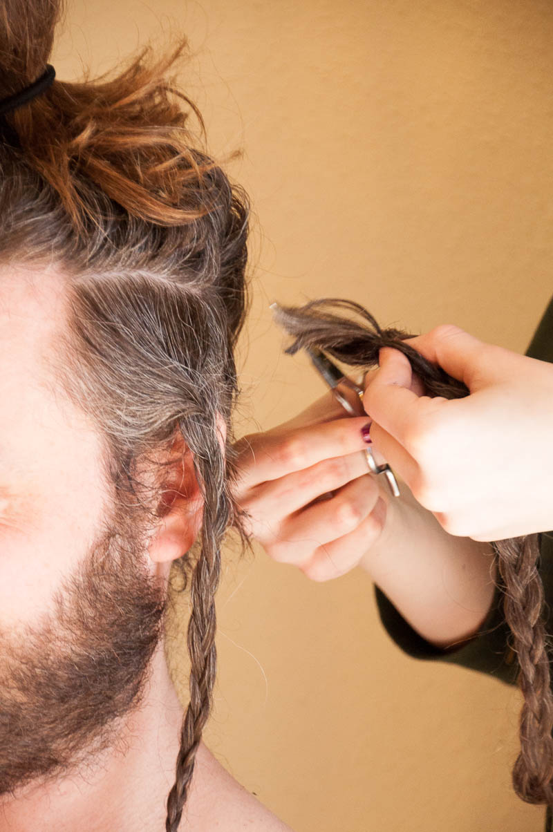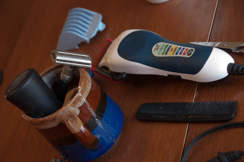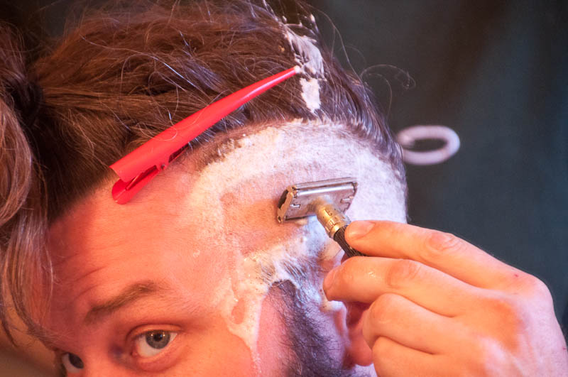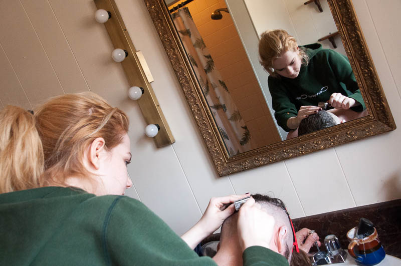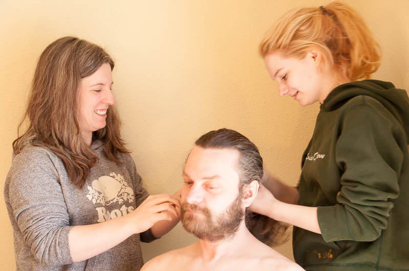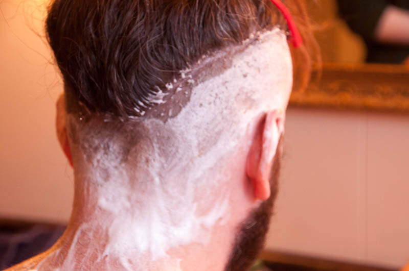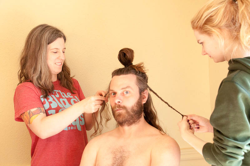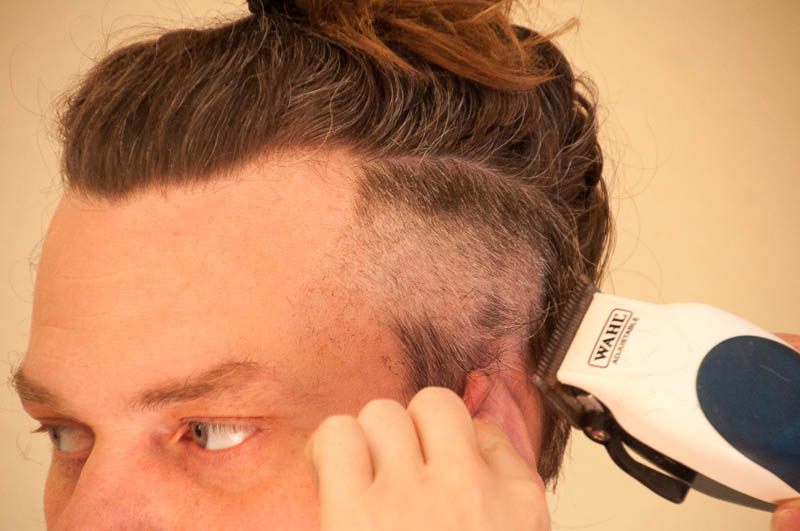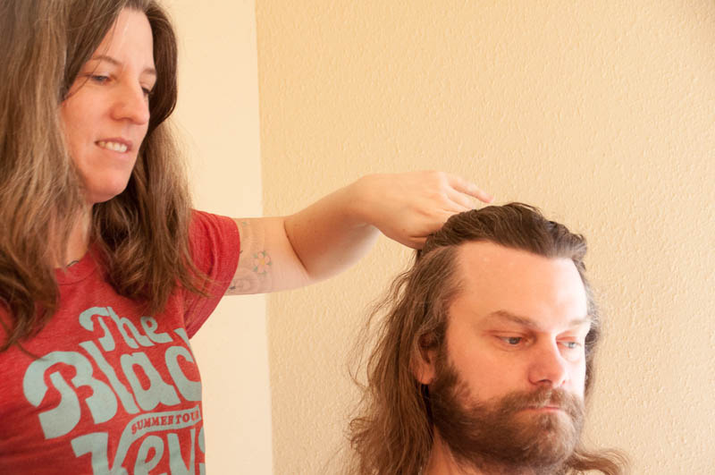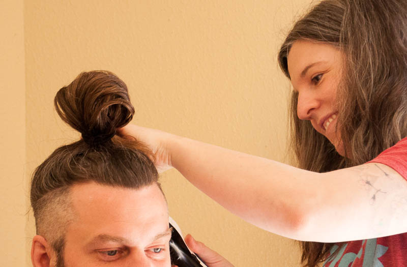 After Steph made phenomenally delicious lemon ricotta pancakes with blueberry compote and dark maple syrup for breakfast (brunch) we engaged in something I never thought I would do this weekend – or any other time, frankly.  I photo-documented the process of Steph getting an under cut from Yelena and Megan and I don’t know who had more fun – Steph (who wanted this done), Yelena, Megan, or me!