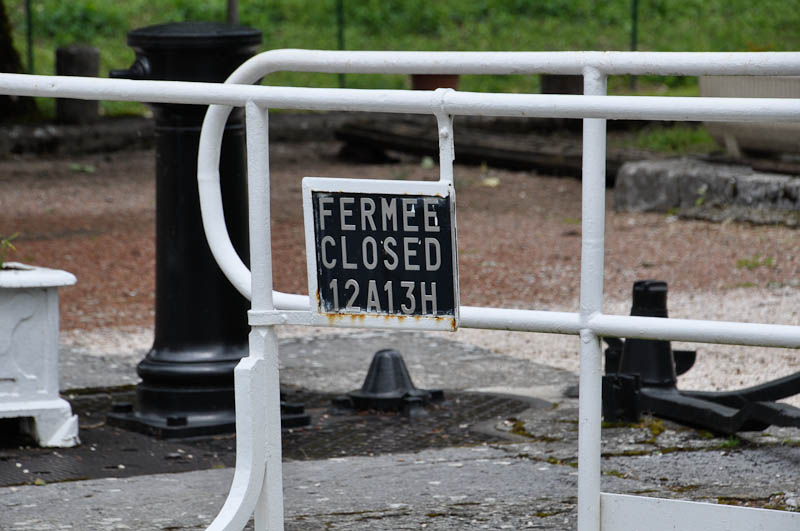 Each lock has a lock master and each lock master has a cottage residence right beside the lock. The ones we saw are all charming – some are more charming than others. Note the closure sign – experienced canal boaters told us that if you get into the lock at 11:55, you don’t get out until after lunch!!!