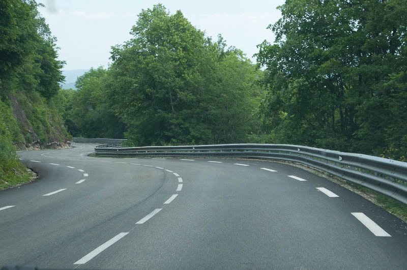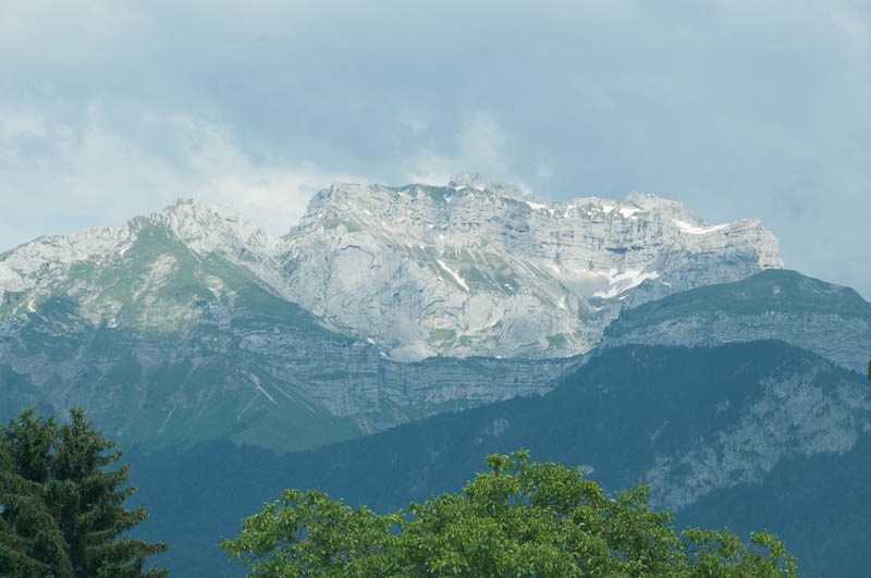 Before we left on this holiday, we planned to go into Paris for a day or two but, once we got to the restful and relaxing Bourgogne area and settled in, we had no burning desire to head into a busy, yet exciting, city. Instead, we both love the mountains so today we headed southeast into the French Alps. We scooted down the autoroute until we got to Bresse (the only place in all of France – maybe the world – where chickens are protected by the French government), then started in on the back roads heading first into the forested mountains, then into the higher, snow-capped peaks. We could start to see them as we closed in on Annecy, and they got better the further we went.