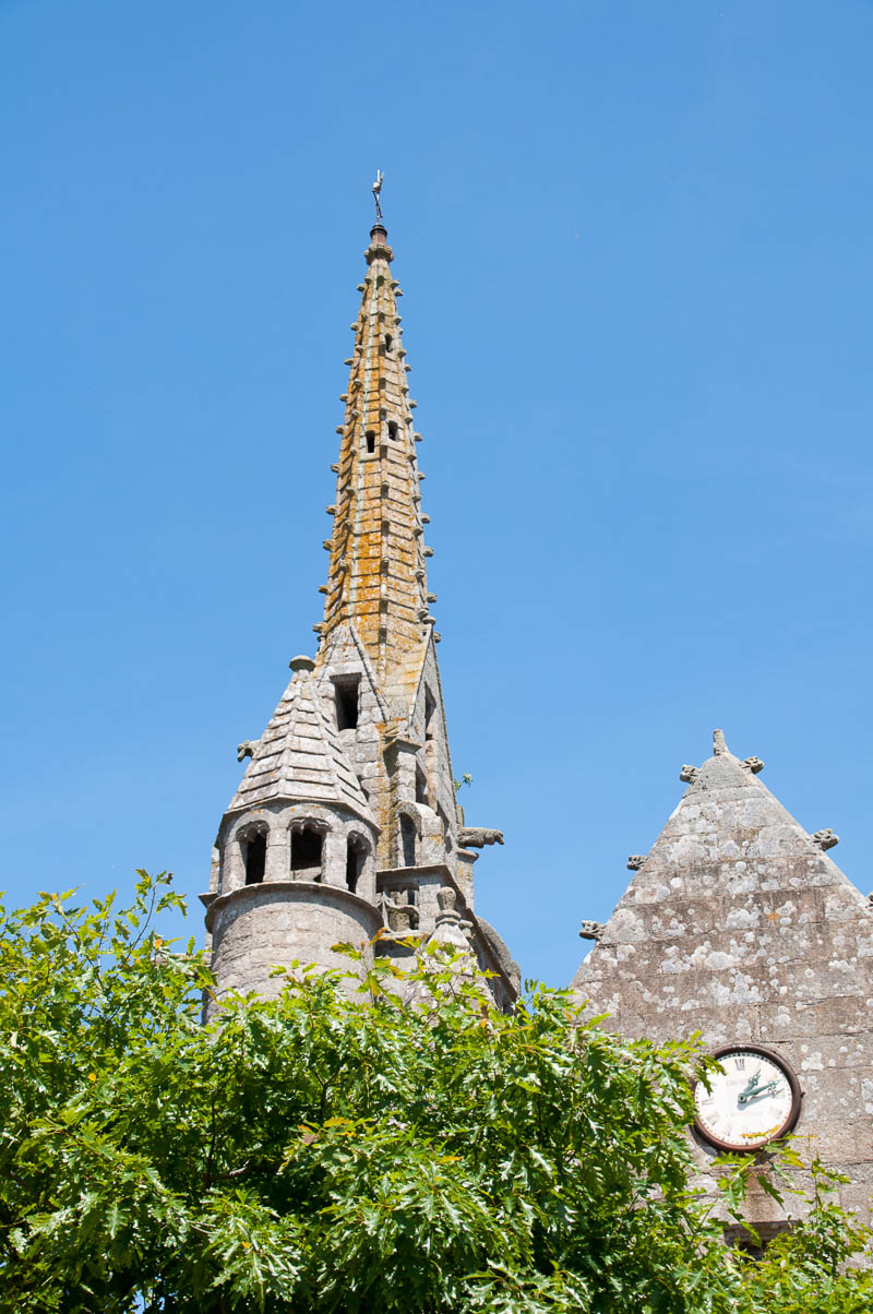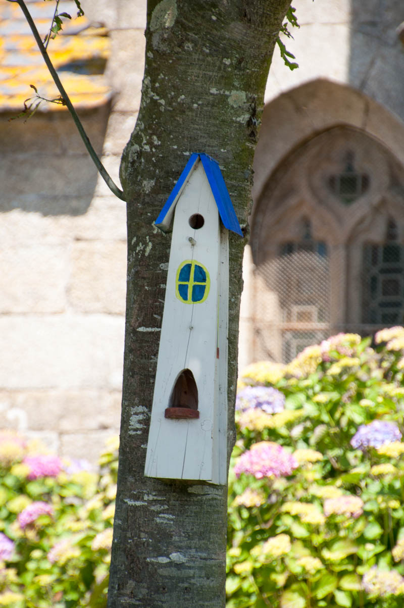 Our first stop was in a very pretty village, just northeast of Lannion (so still fairly close to home), called Ploumilliau. We were attracted to the church, so found a parking spot and wandered around a bit. There were so many flowers – everywhere. I’m sure the village funds take care of the plantings in the village, but I wonder if they also plant and care for the flowers around the church and, if not, who does that? There were also a few interesting old photographs of a few streets leading out from the square, strategically placed so you could see what the street looked liked years ago and what it looks like today.