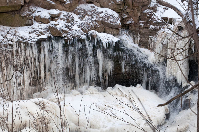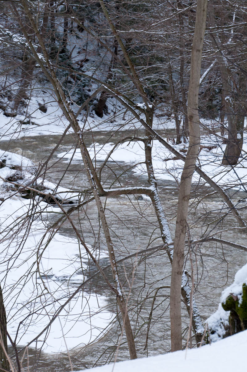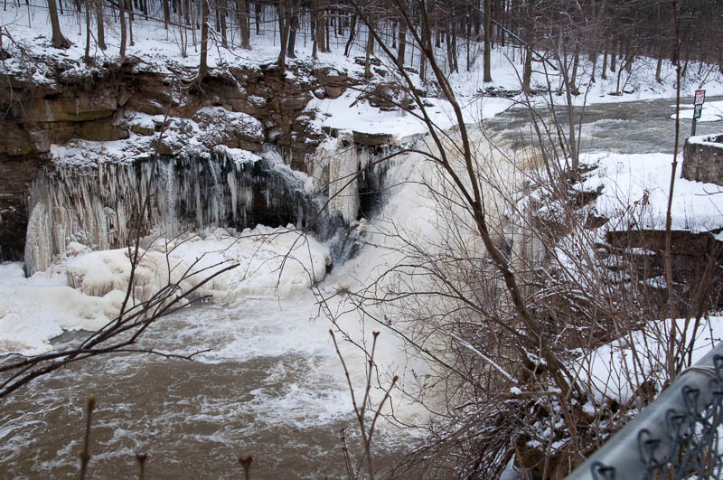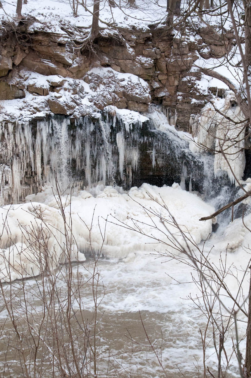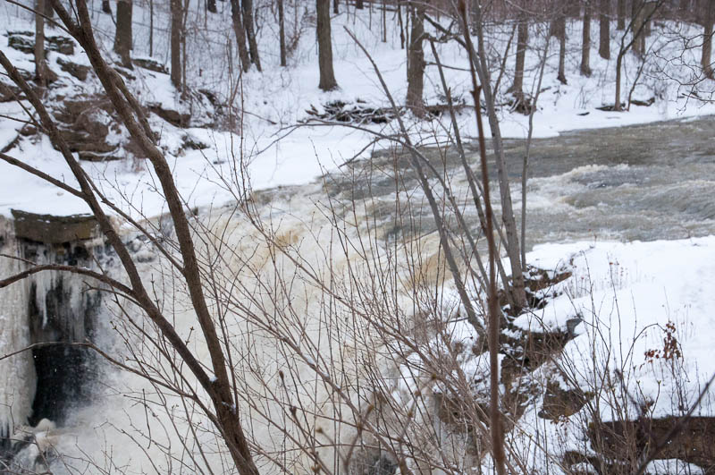 And there they were, around the next corner. Winter falls can be so beautiful, and then there were these ones. Maybe it’s because the river isn’t very wide, or maybe it’s because it’s not so deep, or maybe it’s because the drop is wider than it is high – who knows? But the water, the froth, and the icy bits were dirty! Oh well, it was still worth the effort.