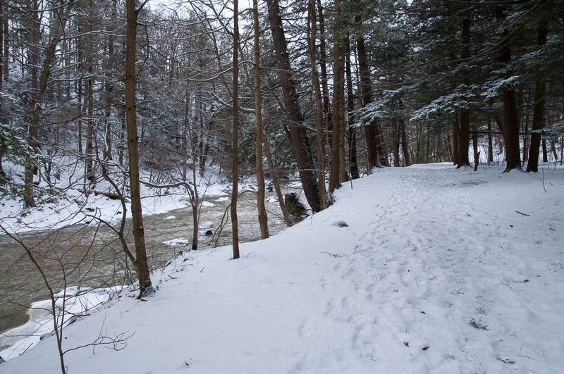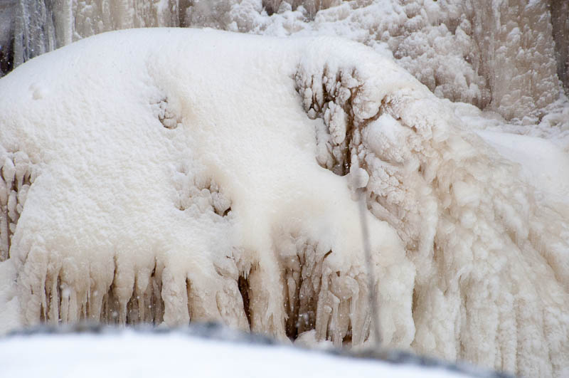 It was a little overcast, but not too cold, as we crunched through the snow, drawn closer and closer to the falls by the increasing intensity of the rushing river.