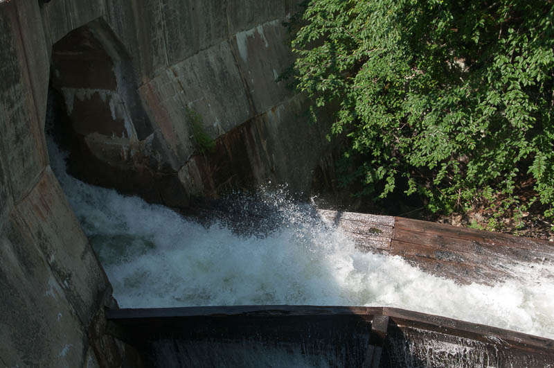We thought we’d drive up to Dorset to browse through Robinson’s General Store, have an ice cream, and watch the boats come and go on Lake of Bays. On the way, we passed Buttermilk Falls. We’ve been to Buttermilk Falls before but now it had a special something. Rick Fines wrote a whimsical song about Buttermilk Falls – basically, the name conjured up fairy tale images to him and he’s now afraid to stop and look at them in case they don’t live up to his expectations. We stopped. We’d heard that the Haliburton/Muskoka areas had been hit hard by water this spring with all the rain we’ve had. But it was still a bit of a surprise to see the left-over sand bags lined up along the lake side of the falls.