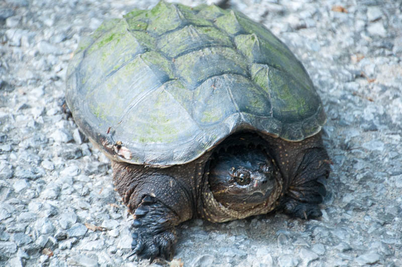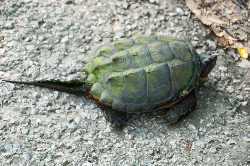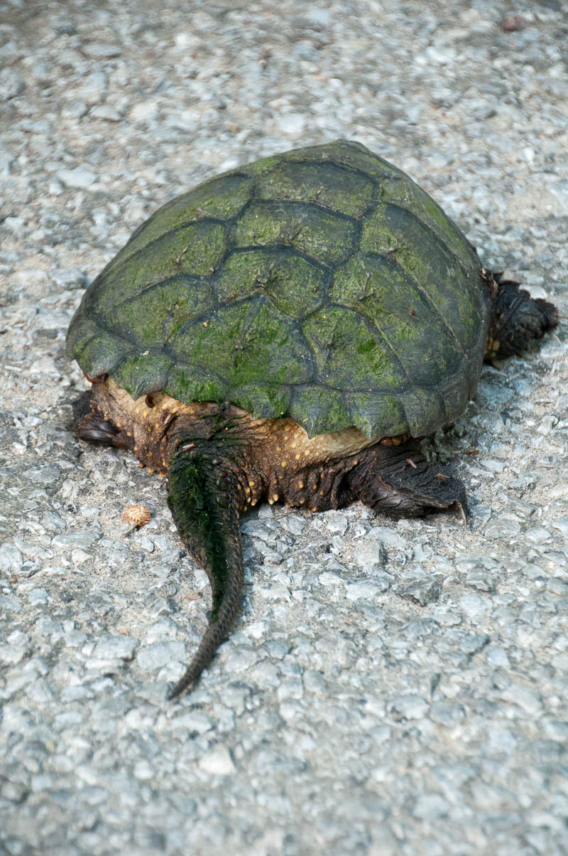 We called and made our reservation at The Corner Cafe and were advised to get there as quickly as possible as they were expecting a group of 12. We were about 20 minutes away. But on the way down, we made a 10-minute stop to visit with a crusty, rubbery-looking creature that was making a cross-road journey… You never know who you might meet in the country.
