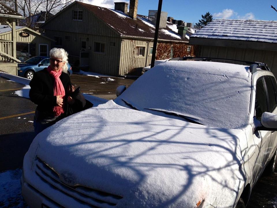 A few weeks ago, we accepted an invitation to a family lunch in Toronto and, not wanting to miss out on that, we headed out after breakfast for the two-hour drive past home and into the city. We like car rides but this one, there and back, was a little tense at times. We drove through not one, not two, but three snow squalls before we arrived – late – for lunch. Our visit was fun. We ate well, laughed a lot, argued city politics a bit (if you’re reading this after 2013, that would have involved lots of discussion around Mayor Rob Ford’s shenanigans and questionable lifestyle), played with dogs, and were happy to have been part of the afternoon. It was slow leaving the city and all was good until we got slightly north of home. That’s when the squalls started again and, although there wasn’t a lot of snow, the temperature had dropped and the roads were quite slippery. Fortunately, there weren’t too many others out that night, so we took it slow and arrived safely back at Breadalbane around 6:30pm.