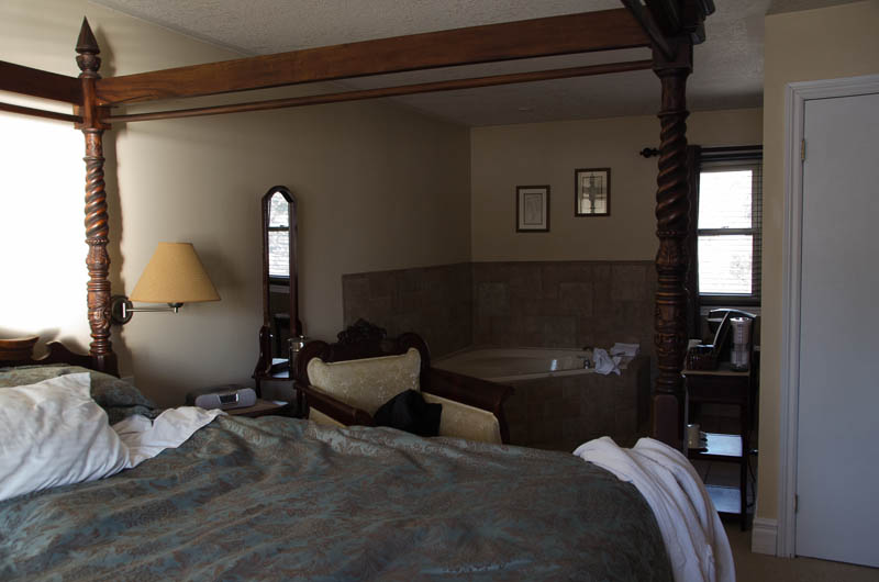 It really was a shame that we either ate and drank too much, or were just too tuckered out from stressful driving conditions, ’cause there was this fabulous jetted spa tub in our room that we never did get into. Perhaps there’ll be another surprise in my future???
