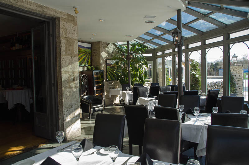 Fergus is about an hour northwest of home and, after packing a bag and dealing with Friday evening traffic, we arrived at the Inn just before 7:00pm. Upon checking in, Steve discovered there was a special dinner event that evening featuring a 5-course gourmet meal, with wine pairings sponsored by Coyote’s Run, a local Niagara winery. Yet another surprise when he came back to the car to collect me and our belongings!